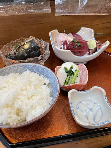 Read more昼に入りました。 栄町に在る和食のランチで有名な店らしいです。行き付けの蕎麦屋さんで聞いたので行ってみました。居酒屋と言うよりは、小料理屋と言った雰囲気。昔気質の大将と女将の2人で切り盛りしているようです。 入ると時間が掛かると言われ、了承すると空いている席に案内されました。時間が掛かるとは言っても10分チョイでした。 店はあまり広くなく、席はカウンター6。小上がり2。個室2です。入口から左の個室は小さく、3人位しか入れなさそう。奥の個室は見た感じは6畳位は有りそうで、ソコソコ広いみたいです。 他のレビューを見るに昼はお任せのみらしく、座って待つと供されます。 出てきたのは《お任せ定食》1000円です。現金のみだと思います。 刺身はブリかワラサと平目。平目は塩で味付けしてあるらしく、ワサビだけ付けて食べてと言われました。煮魚はブリのアラ。汁は潮汁かと思います。 多分ですが、その日に使う魚を限定して仕入れ、メニューを絞っているのだと思います。頭やカマはアラ煮にし、中骨等は汁に使う。そうして無駄無く使う事で、コストを抑えているのでしょう。 魚の質は良かったです。ブリは朝〆か〆て1日かも。平目は歯応えからして2日か1日半は寝かしている気がします。何れも臭みが無く、美味しかったです。 ただ、煮魚と潮汁がヌルかったのは残念でした。刺身のツマがシナシナで水っぽかったです。私はツマも残さず食べるので、美味しくないツマは残念です。買ってきた物かも。 漬物は店で漬けた浅漬けかも。塩加減が程良かったです。 比較的安価に良質な刺身が食べられるのは良いかなと思います。 他のレビュアーさんが指摘している様に、大将の女将に対する指示が苛立ち紛れで口調が荒いのが目立ちます。空いていれば然程でもないのでしょうが、混んでいると顕著かなと思います。気にする方にはキツいかもしれませんが、昔気質の男性にはよく有る事です。本人は悪気が無く、荒い口調が平常運転の可能性も有りますね。 女将の接客は明るく丁寧で良かったです。大将も根は良い様で、一段落すると明るく接客していました。 夜はまた違う様なので、機会が有れば夜に来ようと思います...