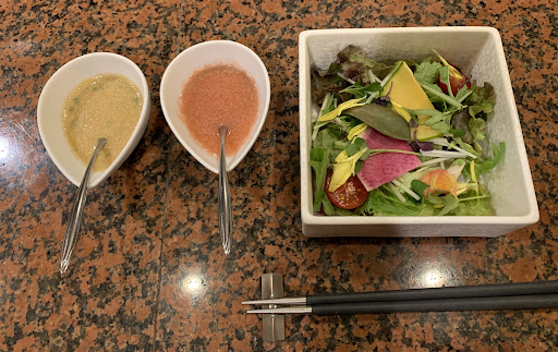 Read more日帰り湯ったりプランを利用しました 事前に電話で席の予約をしなければいけないのですが、つながらないです。留守電につながる率が高いのが不便。ここまでつながらないなら、ネット予約に対応した方が良いのでは?という不満があります プランの食事券を持っている人は、カウンター席に案内されるようです 食事は、鉄板焼きランチからアミューズとシャーベットを抜いたものが提供されますが、追加料金で特定のコースに変更が可能です 29日だったので、本当は肉の日限定コースを食べたかったのですが、残念ながら手渡された湯ったり日帰りプラン専用のメニューには掲載されていなかったので、変更なしで食事をしました。今後、追加料金で肉の日コースも選べると嬉しいです サラダのソースは、柚子と梅。柚子の方が好みでした。プチトマトが甘くて美味しい メインはオージービーフにしましたが、想定外に美味しかったです。和牛ハンバーグは正直味がイマイチでした。迷ったけどオージービーフにして正解でした。3種類あるソースは、塩でいただくのが一番シンプルで美味しかったです。ご飯は長粒だったからインディカ米?あまり美味しくはなかったけれど、ガーリックライスにしたら美味しいと思います。箸先が金属なので、食べ物が滑りやすく使いにくいのが残念でしたが、総...