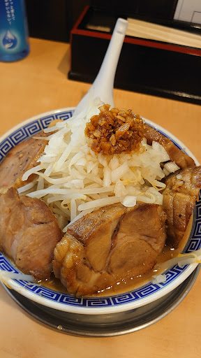 Read more二郎系ではなく二郎インスパイア系。 美味しくいただきました! 食券制(電子マネー不可) 灰皿あり(屋根なし) 駐車場あり(わかりづらい) カウンター席のみ 近くにセブンイレブンがあるが、停めてラーメンに行ったことがバレると最悪の場合3万円請求されるとの噂もあるのでオススメしません。 夜なら店の前、歩道の上に停めている方もいるようですが、それもどうなのかと思います。 車で行く場合、停める場所は自己責任。初めて行く人にはわかりづらいかもしれないが、駐車場に停めるのが一番安心。 二郎系ラーメンと聞き、仲間と一緒に3人で初めて行きました。 (追記、後で聞くと二郎系ではなく二郎インスパイア系とのこと) 金曜20時くらい、1人並んでました。 先に食券を購入し外で待つ感じ。 雨降ってると待つのがしんどいかも。 店構えの感じよりも店内は狭い印象。 特製ふじそばの食券を購入。 二郎系と言う割に量は多い感じはあんまりしなかった。が、少食の私が並盛で結果ちょうどいいくらい。店員さんは2人。 食券を回収されるときに好みを聞かれます。 「にんにくいれますか?」と聞かれます。 にんにくを入れて食べましたが、味的に絶対入れたほうが美味しいと思います。にんにく好きならにんにく多めでもいいくらい。 店入口すぐ横の自販機の飲み物は持ち込みOKらしい。