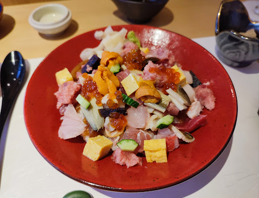 We were shopping at the Makuhari outlet and got tired and hungry so we went to this very Japanese style restaurant for lunch. They offer lunch sets from around 3000 yen each. Each lunch set comes with an appetizer of cooked sea snails, a steam egg with mushroom and seafood, and a miso soup. We ordered a sashimi rice bowl set and a grilled salmon with sushi set. Everything was great! We had the place all to ourselves as it was already 2 pm when we went there. Beware if you don't like raw fish that much as they don't have a menu in English, and there were so raw fish sushi even in the...