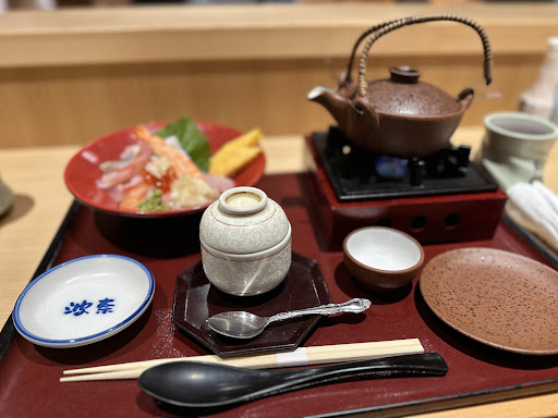 We were shopping at the Makuhari outlet and got tired and hungry so we went to this very Japanese style restaurant for lunch. They offer lunch sets from around 3000 yen each. Each lunch set comes with an appetizer of cooked sea snails, a steam egg with mushroom and seafood, and a miso soup. We ordered a sashimi rice bowl set and a grilled salmon with sushi set. Everything was great! We had the place all to ourselves as it was already 2 pm when we went there. Beware if you don't like raw fish that much as they don't have a menu in English, and there were so raw fish sushi even in the...