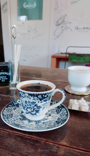 Simple cafe with writing on the walls, serving coffee & light lunch by day & cocktails by night.