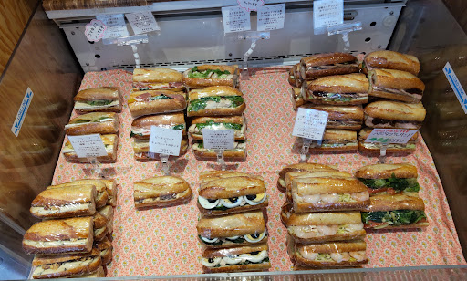 Read more日曜14時頃訪問。ハード系パンのサンドイッチが好きなので冷蔵ショーケースへ直行。 種類多い!そしてすべてオシャレかつ絶妙にそそる具材の組み合わせ…っ! 例えば「エビと卵のオーロラソース(うんうん、なんか味想像できる)+「しょうがオイル(なんだと!?)」とか、 「塩サバとレモンと玉ねぎ(うんうん定番やね)」→塩サバ燻製してます(なんだと!?)みたいな。