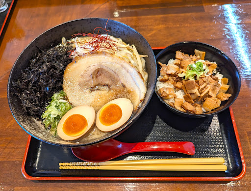 2024年4月、また新たに新作ラーメンが出ていました。「とんこつ味噌背脂ラーメン」です。こちらは、赤味噌玉とあおさのりが乗った味噌ラーメンで、どこか山形の「赤湯赤味噌ラーメン」を彷彿とさせます。この味噌ラーメン、かなり美味しいですよ。山形の赤味噌ラーメンと千葉の背脂豚骨ラーメンが合体した感じ?!
