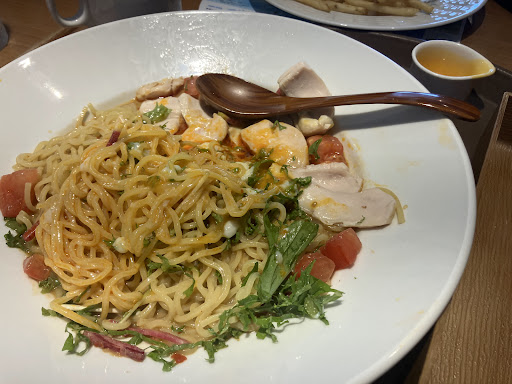9:30過ぎに入ったところ、バイキングですかと聞かれてそうだと答えたら、利用したことがあるかの確認もせず、一切の説明もなしで、会計してお好きな席へどうぞと案内。最近はバイキングもたくさん有るしどこもマスク着用🧤使用が当たり前だから、何とかなるけど、店によって何処に料理があって、カトラリーやそれこそ🧤がどこでとか、ドリンクバー利用は何処でなど、例え見える範囲に有っても説明必要な人がいるかもしれないという心配りはあって当然。しかも私より本の少し後に来たお客さんには、終了時間の案内をしていて、え?聞いてないよな状況。しかも外のポップに書かれてる時間と説明していた時間が10:00で実際には10:30だった。余裕が有るから説明しなかったと後で気づく前に10:00だと漏れ聞こえてしまったからかなりパニック。結局、食べたいものを先に取っておいたから、かなりの料理が冷めてしまって、ただでさえそこそこの味なのにがっかりな結果に。 ワッフルを自分で焼いてトッピングできたり、パンも4種類有って、温めのトースターが2台有り、普通なら温かいものを温かいうちに美味しく食べられたのに残念でした。 時々面倒になることも有るけど『(当店の)バイキングのご利用は初めてですか』ってフレーズはサービス業にとって当たり前且つ大事なものなの...