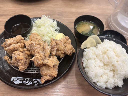 平日13時前に入店、客は席の半分ほど、この時間この場所を考えれば、なかなかすごいと思うし、皆この店を目当てに来ていることは伺える。女性は居なかったが、若手からある程度の年齢まで様々だ。悩んだが唐揚げライスを注文した。唐揚げの量を注文することが出来るが、通常のサイズを頼んだ。タレも二種類あったが、唐揚げ自体にニンニクが結構入っているとの紹介を受け、ニンニクだれではなくおろしポン酢にした。思っていたほどのニンニク感はなかったが、量は通常の定食屋よりはあり、ある程度腹は膨れた。タレが別皿なのは嬉しかった。全体的に量の多い店なのだろう。この値段と量で鶏肉の質を問うことは出来ないが、安い鶏肉独特の歯ごたえのなさ、柔らかさをカバーするには、もう少し堅めの衣にした方が満足度は増すと思う。そうすれば塩で食してみたいと思った。唐揚げの量が増えれば、当然脂っこくなる。それを打ち消すために、キャベツの量が多く沢庵も二切れ付いていたが、もう少しあれば後味もよかったと思う。次は別のメニューを食してみたいと思った。