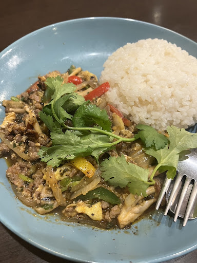 Read moreランチでガパオ丼にスペシャルセットで注文。 ガパオは独特の味付けで、最初は甘味が強く、後が結構辛め。 スペシャルセットではメイン料理がおかわりできるとあり期待していましたが、訪問日は春雨の中華炒めで、メインというより副菜だなぁという感じで少し残念。 春雨も水分吸いすぎてボヤけた味になっており…まあ、味付けは好みもあるからこんなものかと。 デザートも楽しみにしていましたが、本当にちょこっとの量でした。まあ、350円だしね…。私はあまりお得感は感じなかったです。 お食事より気になったのはサービスです。 ホットのフルーツティーを頼んだら、氷が入っていなくてストローが刺さった状態で出てきたので、ホット??と思いながら飲んだら冷たい温度。 ホットをお願いしたんですけど、と声かけしたら、「えっえっ」と戸惑われていたので、氷が入っていないこれがホットなの??と思って聞いたら違うという返事だけ。もしかしてホットには出来ないのか?と…(でも注文時にはアイスか訊かれてホットでと頼んだし) 後からホットを持ってきてくださいましたが、とてもぬるくてガッカリしました。 事前に調べてお料理も含め期待しすぎたのが良くなかったかな。 サービスはもう少し気がきくようになると良いと思います。
