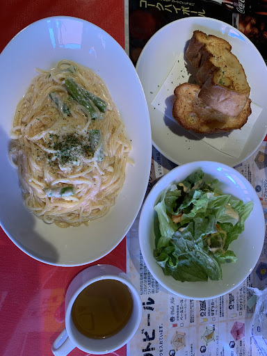 Read moreみつわ台霊園の対面に有ります。以前から気になっていましたが、お墓参の帰りに寄ってみました。イタリアンレストランですが、最近、ラーメンを出すようになったそうで、他の2組のお客さんがラーメンを美味しそうに啜っているのを見て、パスタ、ピザセットにイタリアンラーメンを頂きました。イタリアンラーメンも+300円でサラダと飲み物付きのセットにすることが出来るそうでセットで頼みました。パスタは生麺でモチモチ感が有り大変美味しかったです。大盛りで頼みましたが量もソコソコ有り、少ないという感じではありません。イタリアンラーメンは豚骨スープと大変良く合い、不思議な味付けで病み付きになりそうです。惜しむらくはピザの生地の薄さでもう少し厚みが有った...