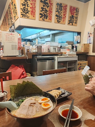 Read more14号沿いの下り方面側。駐車場は店前と店奥(出入口が別)に20台くらいは停められるだろうか。店はとても目立つが店奥の駐車場が分かりづらい。食券制。家系ラーメンであるが、醤油(これが家系のラーメン)、中華そば、味噌、塩と種類も豊富。他に餃子、トッピングなども多数。カウンターは仕切りがあり、テーブル席も複数。日曜日の22時来店したが、満席。醤油ラーメンを注文。家系らしく濃厚なスープでめちゃ美味い。脂っぽさもなくコシのあるやや太麺とも抜群にあう。濃すぎるというコメントもあるがこのくらい濃いほうが好み。具はたっぷりのホウレンソウ、うずらの卵、大ぶりなチャーシューとデフォでも十分な量。スープと海苔とご飯の組み合わせは最高。味変で生姜、豆板醤などいろいろあるようだが試す余裕がなくあっという間に完食。餃子も小ぶりながら熱々で美味い。店内はラーメン屋らしく活気があって大変良い。サービスの方に無理なお願いをしてしまったが快よく対応していただいた。感謝。都内に...