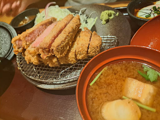 Read morePopular restaurant in Japan. Beef is ok, soft and tender, but not one that will melt in your mouth. Crispy outside and soft inside. Yum yum. The 3 different sauces will give another layer of flavor. The best way to eat beef is to heat the beef on the portable fire stove, make it warm. The heat intensified the flavor of the beef. Scrambled the onsen style egg in the rice with sweet soya sauce............ very good. Free refill for miso soup, cabbage, and rice. I am surprised that cabbage salad in Wasabi soya sauce is so yummy (or I am really hungry). 🤣 . One thing foreign visitors need to bear with is that their English skill is limited. But they are very polite and eager to serve.