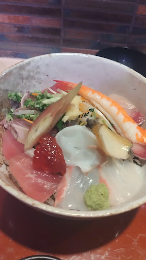 Read more昼に入りました。栄町の割烹の店に成ります。川沿いの店で、目立たない場所に在りますが、評判が良いみたいです。 内装は綺麗で、落ち着いた雰囲気でした。 席はカウンター6。個室小上がりが3。宴会場が有るかは未確認です。 《海鮮丼・アジフライ付き》2200円です。クレカ使えるらしいですが、値段が変わるらしいので現金で支払いしました。 値段を考えると、やや割高感が有るかなとの印象です。ネタはまあまあ。アジフライは脂が乗っていましたが、鯵そのものの味が薄い感じです。輸入物かな?若しくは、真鯵ではない別の鯵かも。刺身でも食べられる鯵を使ったアジフライを食べ慣れているので、イマイチでした。 悪いとは言いませんが、値段を考えるとと言った感じです...