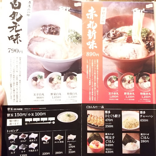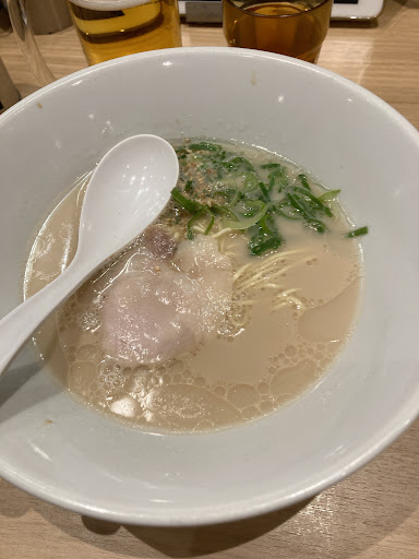 Read more2025.02.20 平日20時頃 訪問しました。 武石インター付近は 道路が混み合い そして ラーメン激戦区でもあるので 車を走らせていると 人気店の駐車場には たくさんの車があり そうでない店舗との差が出ています。 ブラックを基調にしたホワイト外観はモダンで 店内は清潔感溢れる シックでオシャレな雰囲気です。 入店すると スタッフさんから テーブル席 満席のため カウンター席のみになりますがよろしいですか?と問われ 待つのも億劫なのと サクッと食したかったので カウンター席に案内していただきました。案内された席に移動中 配膳しようとしていたスタッフさんを横切る形になってしまい 申し訳ないと思っていた矢先『 チッ』と その配膳 若い男性スタッフさんに舌打ちされ とても驚きました。 確かに 配膳するために厨房から出てくる瞬間と 私達がカウンター席(厨房出入口脇に設置されております)に案内されているタイミングが重なったため遮ってしまったのですが⋯。アルバイトスタッフさんなのかな?だからなのかな? 他のホール男性スタッフさんからは 気持ちの良い接客をしていただき 美味しい豚骨ラーメンをいただけただけに とても残念に感じたのと 私自身 店員さんに舌打ちされた経験がなく 衝撃的な出来事過ぎて 次の来店は しないと思います。 私は 生ビール・白丸シンプル(790円)と 相方さんは極 赤丸新味(1420円)をタッチパネルにてオーダー。 究極の一杯を赤丸新味と白丸元味の2つの味は 創業から受け継がれてき博多ラーメンの本流であり 原点の”白丸元味”。 自家製の香味油を加えたことで 一杯のラーメンから奥行きと調和を楽しめる”赤丸新味”。 どちらの味もこってりとした豚骨スープが 極細麺と絡み 香りと味を楽しめます。量は女性でも少ないかなと思うので替玉で更に楽しみましょう。替玉(150円)・小玉(100円) そしてセルフコーナーには もやし・紅生姜・辛子高菜・にんにくがあり お好みでいただけます。もやし 美味しい!ビールのおつまみにもなります。紅生姜や辛子高菜を入れて 味変を楽しましょう。 カウンター席で完食後 お会計をしましたが テーブル席の先客さん達は まだ在席しておりました。雰囲気と居心地が良いので 食事が終わっても 残っている方が多く 後から来たお客さんは カウンター席or順番待ちになっていました。