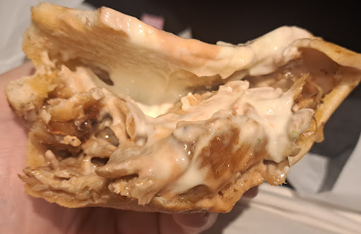 I initially ordered the Beef Sandwich with Garlic Sauce (ビーフ サンド ガーリック ソース) and it was heavenly! 😍 The beef was tender, the pita bread was soft and subtlety sweet, and the creamy sauce was just perfect! My husband ordered the Chicken Sandwich with Original (medium hot) Sauce, in large size (チキン サンド 中辛 ソース 大きい) and he too devoured it in seconds.
