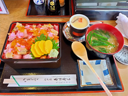 Read more宝石箱の様なバラチラシ。 千葉寺駅から線路沿いの人気の春日寿司。 以前にタクシー運転手さんから、蘇我辺りでは一番の寿司屋と聞いていた。ちょと前にバラチラシを食べ損ねてバラチラシと言えばと思い出し、ようやく訪問。 カウンターに座り気になっていたバラチラシ1100円税込を頼む。大将夫婦と若大将夫婦。若大将と常連さんの話しを聞くと若大将は釣りが趣味の様だ。 お膳で提供されたバラチラシは、まるで宝石箱。彩り豊か。一つ一つのネタの大きさが揃えてある。ネタもいいが玉子焼きは特筆。ネタを活かす玉子焼き。これは旨い。 量もそこそこあって大満足。隣の握りも旨そう。これはいい店を見つけた。駐車場の場所も分かったので再訪...
