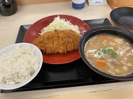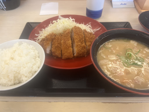 I was exhausted today, so I went to Katsuya to recharge my energy! I enjoyed a hot, crispy pork cutlet set meal. The batter was crispy, the meat was juicy, and it was so delicious that it made me want to eat more rice! Another great thing about it is that for an additional 50 yen you can upgrade your pork soup to a large size. It was packed with ingredients and really warmed me up. It was very filling and I was very satisfied! I'll do my best...