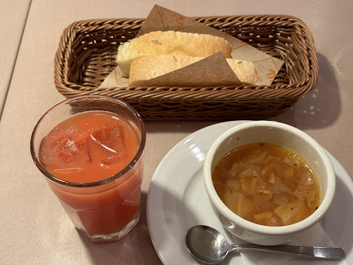 随分前から知っていましたが食べたのは初めてでした。 ホリデーランチメニューで1880円税込。 美味しかったです。パンは無料でお代わりできるのですが、空っぽのバスケットを見て店員さんの方からお代わりは如何ですか?と言って貰えたので喜んでお代わりしました。 お陰で満腹です(笑)。