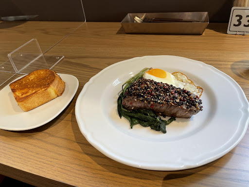1訪目('▽') メニューラインナップはランチとデザート。 Instagramで日替わりメニューをチェックしてましたが、この日はデニッシュで作られたフレンチトーストがメイン料理に合うということでお肉を注文しました。 ランチ時は水ではなくアイスティーを提供いただきました。 お料理はしっかりとした赤みのお肉とフレンチトーストが絶妙な味わいで、いくらでも頬張れる甘さとしょっぱさです。 価格帯は1000円前後(自分の料理は1800円程度) それでも落ち着いた空間でお腹いっぱいになれるので...