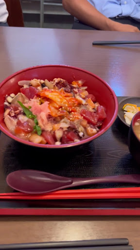 んで、肝心のお味は・・・ まぁ美味しいんだけど、うーん。見た目同様味も賑やかで、正直味のまとまりが無い感じ。 キムチが余計にバラバラ感を醸し出している。 コレなら漬けじゃなくて、中落ち丼とかをチョイスした方が良かったかな。 映え重視でちょっと味は二の次かも。 海鮮は間違いのないお店なので、赤み丼や中落ち丼の方が良いかと思います。
