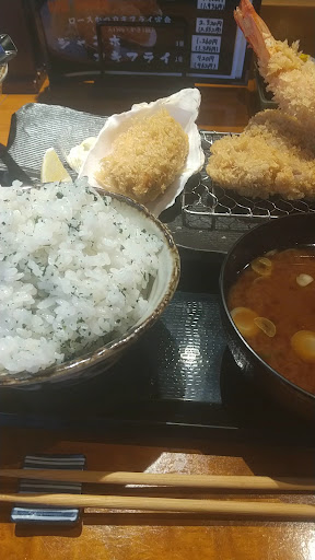 Read more昼に入りました。 ビルの2階に在る店で、夜は居酒屋色が強いみたいです。酒類に力を入れているのか、酒や酒盃が沢山有りました。 木をふんだんに使った内装は落ち着きますが、カウンターの位置が高くて、飲むには良いでしょうが、食事には不向きだと思いました。 頼んだのは《カキフライ》《大海老フライとロースカツ定食》2310円です。クレカ使えました。 キャベツは別盛りでお代わりが出来ます。御飯は一杯お代わり無料とのこと。漬物三種も付きました。 御茶は何故か韃靼蕎麦茶。美味しいけど、何故トンカツの店で?と思います。食後には梅昆布茶がサービスで出ました。何だかチグハグですね。 提供迄にかなり時間が掛かりました。20分以上かな?時間に余裕がないとキツいかも。 ロースカツはシットリした肉質。内部の温度が低かったです。仕上がりを見るに、此れは事前に低温調理をした肉に衣を付けて、軽く揚げたのでは?個人的な感想ですが、低温調理はモモやヒレ等の脂肪の少ない部位か、通常のロースに向いていると思います。脂肪が少ないから、高温調理だと固く成りがちですからね。このカツは肩ロースみたいで、脂が多かったです。脂が多い肉だと、低温調理では余分な脂が抜けないので、しつこさを感じやすいと思います。実際、脂のしつこさがキツかったです。まあ、肩ロースの方が価格が安いから、コストを抑える為に、肩ロースにしたのでしょうね。揚げ油は綺麗でした。衣の仕上がりは良かったです。 カキフライは普通。海老フライは赤海老ではなく、タイガー海老だったのは良かったです。身が大きめで、旨味が強かったです。 味噌汁は蜆の赤出汁。蜆の出汁は弱めで、砂出しが不充分でした。 キャベツの鮮度は普通。漬物も普通でした。 食後に梅昆布茶はイマイチ合わないかなと思いました。油物の後なので、渋めの緑茶かスッキリするほうじ茶の方が良かったですね。 トンカツの専門店ではないから仕方ないかなとは思いますが、調理にしろ組み合わせにしろ、少しチグハグな印象でした...