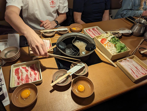 Read moreร้านชาบูเนื้อวัวคุณภาพดี เนื้อนุ่ม มีน้ำซุปให้เลือกหลายชนิด \ ฉันสั่งน้ำซุปชาบู แต่แปลกใจที่ร้านนี้ไม่มีไข่ไก่ดิบให้ และไม่มีน้ำจิ้มอะไรเลยสำหรับน้ำซุปอีกชนิด \ การบริการค่อนข้างช้า เพราะมีพนักงานน้อย ไม่เพียงพอในข่วงที่ลูกค้าเต็มร้าน และล่าช้ากว่าเวลาที่จองเอาไว้ \ บรรยากาศค่อนข้างแออัด เพราะทำเป็นที่กั้นหมดทุกโต๊ะ...