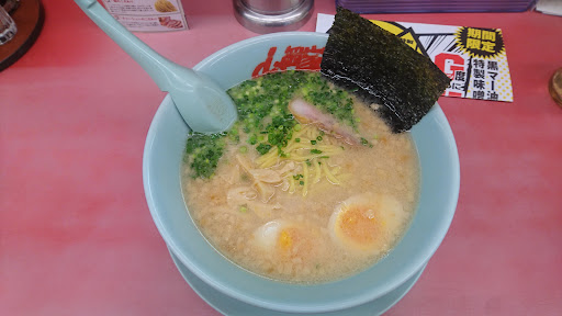 Read more○プレミアム塩豚骨¥890.- 雨の土曜日の午後3時前、国道16号線下りはいつものように渋滞中です。空腹に耐えかねて、大きな駐車場のあるこちらに初訪しました。 沢山ある登りに「ガツン」、「G」の文字が踊っていましたが、気分が乗りません。入店後、タッチパネル式の多機能な券売機に向かい悩みます。醤油系、味噌系などから進む方式ですが、写真で一覧みたいなメニューがなくて分かりづらい!幸い広い店内に前客1のみで、券売機も2台あったことから長考します。結局、オーソドックスと思われるこちらをポチッとし、カウンターで店員さんに食券を渡しますと、「お好みは?」と聞かれましたので、「全て普通で♪」と伝え、待つこと10分弱で着丼しました。 水色のどんぶりの縁の内側に「山岡家」の赤文字がかすれており、天気同様に気分を滅入らせますが、気を取り直してスープを啜ります。こってりとした豚骨スープで背油のコクと相まってかなりしっかりとした味付けです。 トッピングは、赤身のしっかりとしたロースチャーシュー1枚に小口ネギ、ゴマ、半煮卵。穂先メンマとおぼしき薄いメンマの塊が多数スープの中に沈んでいます。 麺は、加水率やや低めの弱いウェーブの中太で、チェーン店ではまあまあの感じです。 卓上の味変ツールは、おろしニンニク、豆板醤、胡椒とシンプルです。 総評としては、特筆すべきもののない、チェーンのラーメンで、値段設定は高めの印象です。メニューを増やすのではなく、店毎に特徴を持たせた方が商売として...