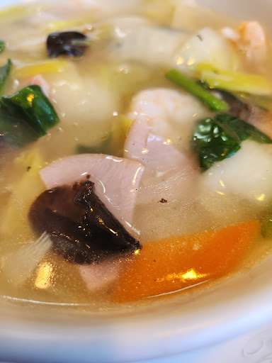 妻と訪問し、私は海老あんかけ麺、妻は豚肉の細切り麺を注文。 10分弱くらいで着丼し、熱々麺は非常に有難い。