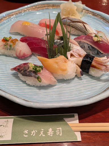 車を走らせ、「さかえ寿司」に到着した。外観は、まさに想像していた通りの、少し年季の入った町の寿司屋さん、といった風情だった。暖簾をくぐると、カウンター席とテーブル席があり、地元の常連らしき人たちが、ゆっくりと昼食を楽しんでいた。