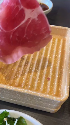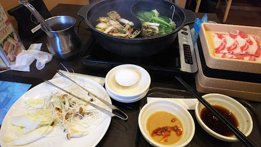 Read more先日遅れた時間にランチを食べに行きました。 二時間も利用出来ませんでしたが、まぁまぁ楽しめました。 今回は肉を食べるのをメインに・・・ クーポンを使い出汁を四種使える様にして色んな味が楽しめたのはポイント高し(通常だとコブ出汁は決定済でチョイス出来るのは一種だけ) 先ずは、鶏肉を除いた四種の肉を二皿ずつ注文。 牛赤身をすき焼き味の出汁に落とし、玉子に付けて食べてみる。 まぁまぁでしたね、次に牛カルビを・・・ こちらの方が柔らかく美味しい・・・けど、えらく縮むのが難点(薄すぎるのかな?) 先に野菜は入れておいたので、それっぽくいけましたね(白菜が真の部分しか無かったのは残念、葉だけ先に持っていかれたかな?) 豚肉は淡白なのでそれなりに・・・(バラ肉にバラ付きが見られたが)