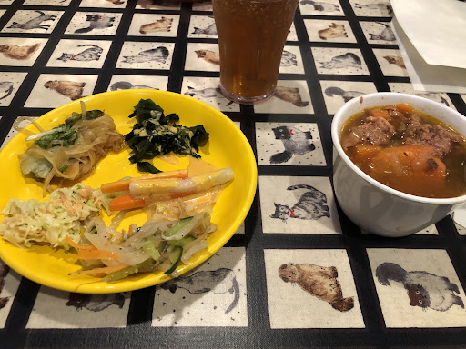 Interesting place. A bit hard to decipher for a first timer who doesnt speak much Japanese but we worked it out with what the staff said in Japanese. There is a salad and drink bar which you can get when you order meat dishes. It's pretty good. You have a good salad selection. Drink selection was average. But you can also get plain rice or garlic rice, beef curry and soup as part of the bar. In addition you can also make your own waffles as well. Chocolate sauce, maple and orange marmalade is available along with other toppings. The meat itself is quite rare and comes on a hot plate, which cools pretty fast in winter. You can ask for a hot stone to cook the uncooked portion of the meat after you cut it. Overall good experience. Lots to eat for the...