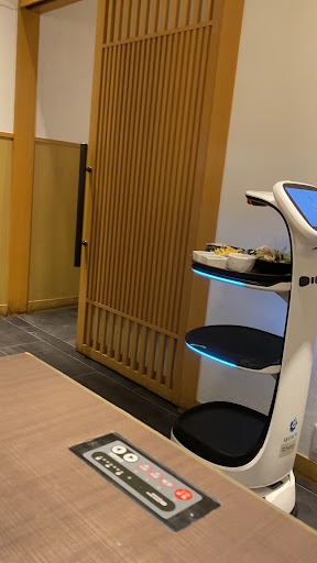 Read more率直に、肉⭐︎4.0寿司⭐︎2.5デザート⭐︎3.5テンプラ3.0 日曜日の20時頃来店。20分ほど待って席に案内されました。 まず専用のスマホアプリがあるのでそちらを利用して予約すると良いです。クーポンなどもあるみたいです。来店ポイントも貯まりますよ。 夜の0時まで営業しているのが良いですね。 メインはシャブシャブとお寿司の食べ放題。コースがお手軽コース(約3000円)、季節のコース(約4000円)、黒毛牛コース(約5000円)の三つがありました。各コースの食べ放題制限時間はラストオーダー80分、席は+20分となってます。 今回は黒毛和牛コースで注文しました。 シャブシャブの料理以外に、天ぷら、お寿司、デザートも付いていて、種類が豊富です。味も想像以上に美味しいと思いました。 お手軽コースに出てくるお肉も食べましたが、普通に美味しくて、お手軽コースでも全然満足できると思いました。 料理等は配膳ロボットが提供してくれて回転もすごく良いです!配膳ロボットが駆け回ってます!配膳ロボットで間に合わない場合は従業員さんも手際良く料理を持ってきてくれます。 料理がとても豊富なので飽きないし、80分あっという間に過ぎてしまいました。また来店しようと思います。 駐車場はありますが、一台分のスペースが狭く感じたので気を付...