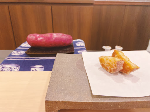 さつまいもは、提供の1時間以上も前からじっくり揚げ始めるんだそうです😳✨✨ 分厚いけど柔らかく、ほくほくで甘みもあって美味しい☺️