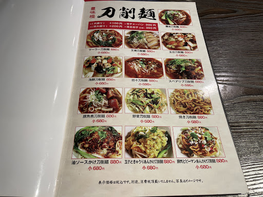 刀削麺(トウショウメン)のお店です初来店です 前からちょっと気になって居ました(数年も…)刀削麺、たまにしか通らないのと社用車なのでなかなかタイミング掴めず本日になりましたw まぁ良くある中国の方のお店だろうなーって行くと外にいろいろ書いてありますランチやディナーでは烏龍茶、コーヒー、サラダ、スープが食べ放題らしいです 入ると中は結構席数多いですが先客は二組だけ空いてますね。 元コンビニで畳席もあって20人は入れそうなのに…流行ってないのかなぁまたは夜がメインなのか