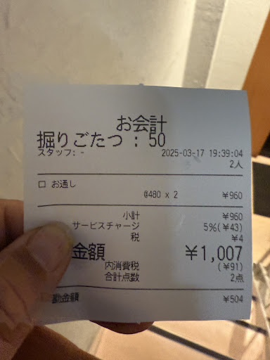 ãªããæãããã€åžã ããã®ãããç±ãã§ããå ¥ãå£ã®ããŒãã«åžã¯æ¶Œãã é£²ã¿æŸé¡90å1人1å(4人ã ã£ããã4å)ã§æ¡å ãããŸããã 飲ã¿ç©ã®æäŸã¹ããŒãã¯æ®éã§ãããé£ã¹ç©ã¯å šãåºãŠããŸããã ã©ã®ãããé ãããšãããšãã©ã¹ããªãŒããŒãçµãããäŒç¥šãæž¡ãããæç¹ã§1åãåºãŠããŠããŸããã§ããã ãéããããç©ã ãã¯çåžæã«ç¡èšã§çœ®ãããŸãããã箞ãåãç¿ã®æäŸã¯ãªããææãããŸã§ãã®ãŸãŸã§ããã(ãéãã¯äººæ°ã«é¢ä¿ãªãããŒãã«ã«äžã€ã¿ããã§ã) æçãæäŸãããªããŸãŸäŒç¥šãæž¡ãããäºã«äžå®ãèŠããæçãåºãŠããŠããªãäºãåºå¡ã«äŒãããšã確èªããŸããšèšããäŒç¥šãååããã é£äºãåºããŸã§ã®åžå©çšæéãå»¶é·ãããšã®äºã§ããã 1åç®ãæ¥ãã®ã¯ãã®çŽ20ååŸã4åç®ã¯äŒç¥šã®æéãã1æé以äžãçµéããŠãåºãŠããªãã£ãããã諊ããŠåž°ããŸããã 飲ã¿ç©ã®è¿œå ãã§ããªãã£ããããæµç³ã«ãã以äžåºã«ããã®ã¯ç¡çã ãšèããçµæã§ãã ãã®æãã«éçãè¿ããŸããã ä»ã®åžã®äººãã¡ã«è©±ãèããšãå šãæçãå±ããŠããªããšè©±ããŠãããã©ã¹ããªãŒããŒåŸã«ãéããæäŸãããŠããŸããã æ£çŽèšã£ãŠãåºå¡ã®æ¥å®¢ã¯ãæåç¥ã®æ¹ã質ãè¯ãã§ããè¬çœªã¯äžèšããããŸããã§ããã(äžéšå æ°ã®ããåºå¡ãããããŸã) ä»ã®äººãæžããŠããåãæ§ãªã¬ãã¥ãŒãããããããäžã§ãäœãæ¹åãããŠããªããšããããšã¯ããããŸã§ã®ã¬ãã¥ãŒã«å¯ŸããŠãã å®ååè¿ããŠããã ããªãã ãšç¢ºä¿¡ããŸããã åžã§ã¿ãã³ãåžããããšä»¥å€ãããšããã¯èŠã€ãããŸãã(éå«ç è ã§ãã) â»é£²é ããŠããªãããã¯ã£ãããšèšæ¶ããŠãããªã¢ã«ãªç¶æ³ãæžããŸãããèšèŒå 容ã¯åäººã®ææ³ã§ãããå©çšãã人...