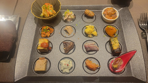 それぞれの味わいはもちろん異なるが、全体を通して感じたのは「振り幅の広さ」と「緻密なバランス感」。 ラタトゥイユや水キムチといった軽やかな酸味から始まり、牛タンや鶏レバーの濃厚な旨みでぐっと深みを出し、黒イチジクやデーツ+チーズといった甘みや塩味の組み合わせで余韻を遊ばせる。 単に16種類並べたわけではなく、強弱やリズムをしっかり考え抜いた構成だからこそ、最後まで飽きずに楽しめるのだと思う。