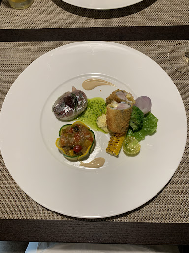 コース内容はその日の予約人数や仕入れた食材によって、ほぼ毎日変わるそうです。 前菜に出てきた鯵も、今朝シェフがご自身で釣ったものだそうで、臭みもなくとっても美味しかったです!おかわり自由の手作り塩パンも優しいお味で、ソースなどによく合いました。