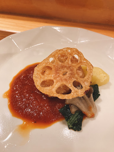 The food: everything thoughtful and carefully prepared. The only option on my visit was the 'chef's menu' (o-makase) and it was most definitely not standard izakaya fare. The hors d'oeuvre plate of various sansai (wild vegetables) and others delivered a spectrum of flavours and textures. Then the main dishes – perhaps seven of them; I wasn't counting – were all delicious. I particularly enjoyed the daikon mochi, along with the sashimi course and the tempura.