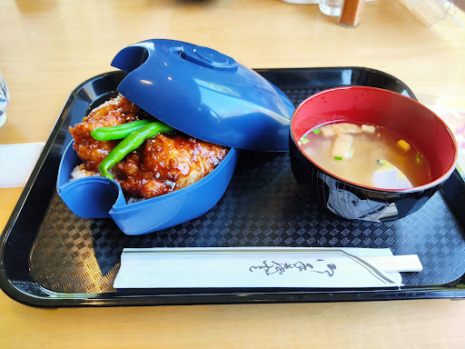 Read moreバイカーの聖地に初来店。詳細は下記へ ①旧1000円札と小銭のみ対応。食券機。 ②バイク弁当をメニュー看板から選んで購入。イートインかテイクアウト用の食券ボタンに注意。 ③一人来店はカウンター、2〜4人はテーブル案内。コーヒー、お茶、水セルフで無料。 ④開店午前11時〜ですが30分前くらいから並んでいるので、逆に12時入店の方が第一陣のお客様が食べ終わり退店するので待たずに入店。おすすめです。が、、売り切れの場合があるかも。 ⑤味噌唐揚げ豚丼は、秩父名物わらじカツをイメージ頂き甘だれ味噌で味付けされた豚丼1種類のみ。ソフトクリームやお土産クッキーはあります。他コラボグッズ購入可。 ⑦店主さんが気さくな方で新札から旧札への両替から食券購入説明、オーダーどりからグッズや展示品の解説までこなしていてバイク愛が感じられます。 ⑧もちろんタンク弁当箱は持ち帰りでビニール袋あり。備えつけのティシュで拭いてと。みなさん食べ終わり後の行動が同じです。お盆と味噌汁器と使用割り箸や紙コップは必ずセルフで戻してくださいね。マナーです。 ⑨バイク弁当箱持ち帰り目当てのお客様がほとんどかと思いますが、弁当箱がいらない方用に丼ぶり提供が始まり300円安くなっていた。バイクに興味なく豚丼の味を楽しみたい方におすすめです。 ⑩暑さのせいかも知れませが、やけに来店が頻繁にあるなぁと思っていたら、半分は、単にソフトクリームだけのお客様と。きっとバイク聖地とか知らない方なんだなと。