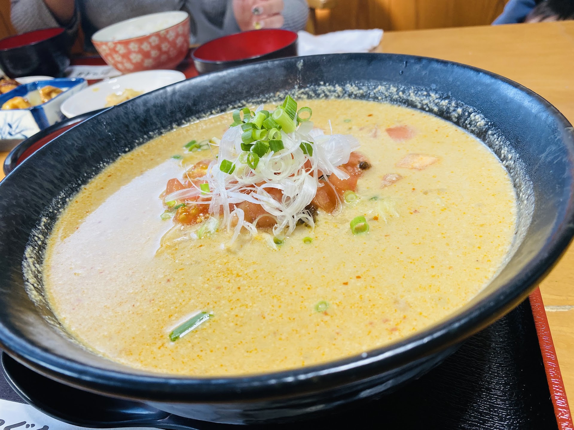 Read more家族で秩父に旅行にきた帰りによりました。 ネットでテレビにも紹介されたとかいうちゃんこ屋さん。 そこで一番押してるのがトマトラーメン。 とにかく押してます。 ちゃんこは押してないんだ、、、と思いましたがそれほど言うならとトマトラーメンを注文。 見た目は綺麗だけどもほんとに美味しくなかった。 麺が安っぽく、くっついてて一口掴もうとしてもうまくとれない。 味が甘くて苦手。 トマトの味もしません。 強いて言うならグリーンカレーのような甘ったるさとエスニックな味。 がっかり。 お店の見た目、も和風なちゃんこ屋さんなのでなんだかトンチンカンでした。 トマトラーメンにちょこっとのっかった味噌がこだわりだと言われました。 その味噌は美味しかったですがすぐスープに溶けて消えました。 豆乳か何かをスープに使ってるので味噌の風味も残らずただちゃんこ屋さんでグリーンカレーラーメン食べたような感想です。 値段も安かったですがせっかくの旅行中での一食でこれを食べてしまった後悔してます。