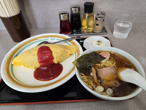 町中華のオムライスと半ラーメンをお願いしました。混雑時でないため5分程度で配膳。 オムライスは見た目普通ですが高さがあるので結構なボリューム。ケチャップ多めですがくどくなく美味しくいただけました〜。半ラーメンもツルツル縮れ細麺、味の染みたメンマ、ワシワシのチャーシュー(褒め言葉)とスッキリスープが美味しかったです。 次は何にしようかな。