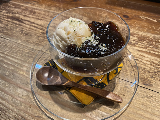 紫蘇ジュースもとても美味しいです。 まるで葡萄ジュースみたいな自然な甘みもあり濃厚だけどスッキリと夏におすすめな味わいです。 ネルドリップでいれたというこだわりの珈琲を使った珈琲寒天と優しい味のアイス、美味しいコーヒーを飲みながら口どけるアイスをいただいてるような感じで美味しかったです。