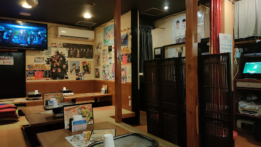 当日、店の隣の駐車場(有料)に停めて、19時半に訪問。 中に入ると、テーブル席、掘りごたつ席席合わせて6組位の客が入っていて、ほぼほぼ満席。 掘りごたつ席に座ると、テーブル席には予めカセットコンロとその上にサムギョプサル用の鉄板が用意されていた。