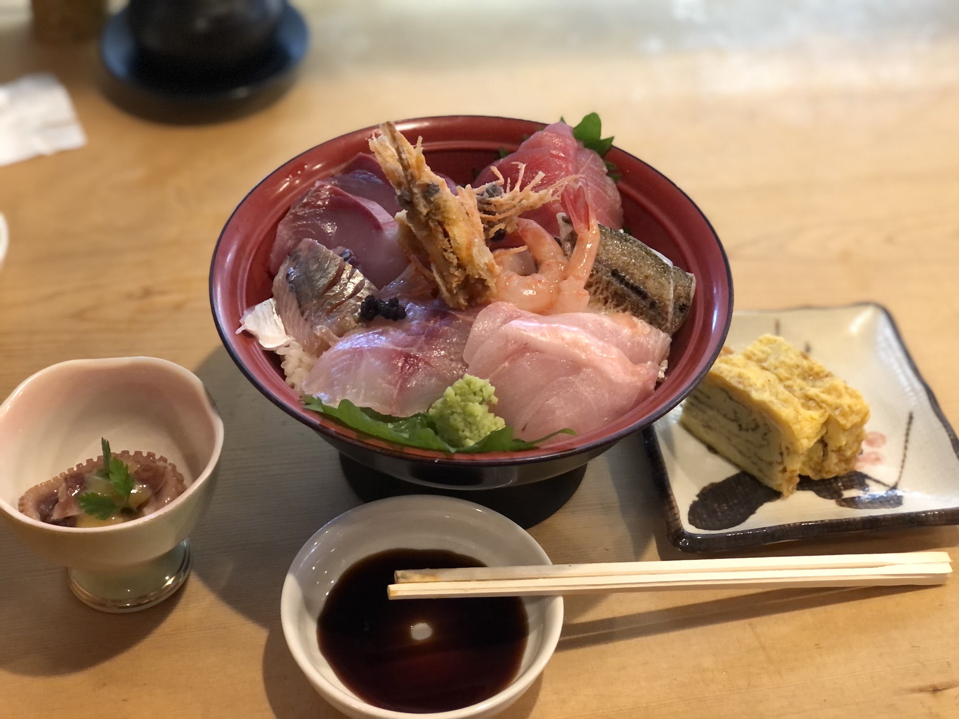 少し高めですが、その価値のある美味しさでした 海鮮丼セットをたのみました 海鮮丼がでてくる時に、1種類づつ何の魚か説明をしていただけました 種類の多さにビックリですが、多すぎて覚えられませんでした、笑 カマスの皮目あぶった刺身は初めて食べましたがとても美味しかったです、カマスの刺身ってこんなに美味しいんだと感心しました ネタはすべて新鮮で臭みが一切ありませんでした 小鉢も、マグロを煮たものに酢味噌がかけてあり、ビックリするほど美味しかったです 味噌汁も美味しくいただけました