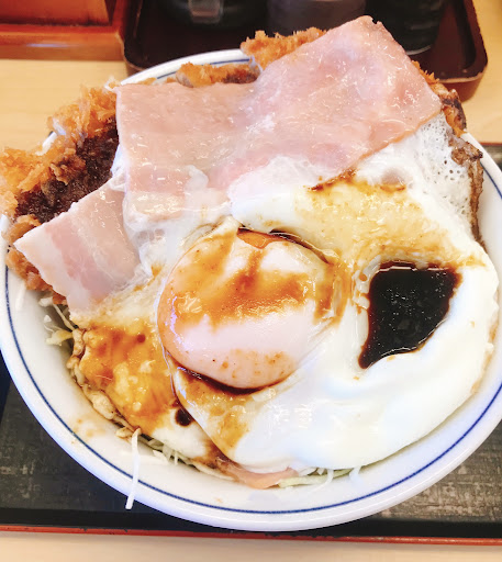 Read moreかつや茅ヶ崎今宿店さん 今日はランチで伺いました。 店の前を通るたびに凄く気に なっていた期間限定のメニュー ベーコンエッグソースカツ丼❗️ ベーコンエッグをご飯の上に😆 まるで最高の朝ごはんって感じ 混雑を避けて、11時過ぎに入店 冷たいお茶を出して頂いて、 即座にベーコンエッグソースカツ丼 をお願いしました。 10分も掛からないくらいで着丼です。 ベーコンと目玉焼きにソースが 掛かっていて食欲をそそられます😄 半熟玉子を割ってベーコンと絡める そしてソースと混ざりメチャクチャ クオリティが高い👍 メチャクチャ美味しい😭 この丼ではロースカツも脇役になる けど衣もサクサクで美味しいです。 箸休めのお漬物もアッサリして 美味しく、油料理にはちょうど 良いです。 お会計759円で100円割引券を 使用して659円❗️ これで600円台はかなりの価値です👍 そして会計後にまた100円割引券が もらえるという100円割引券の 無限ループに私はハマっています😂 期待通...