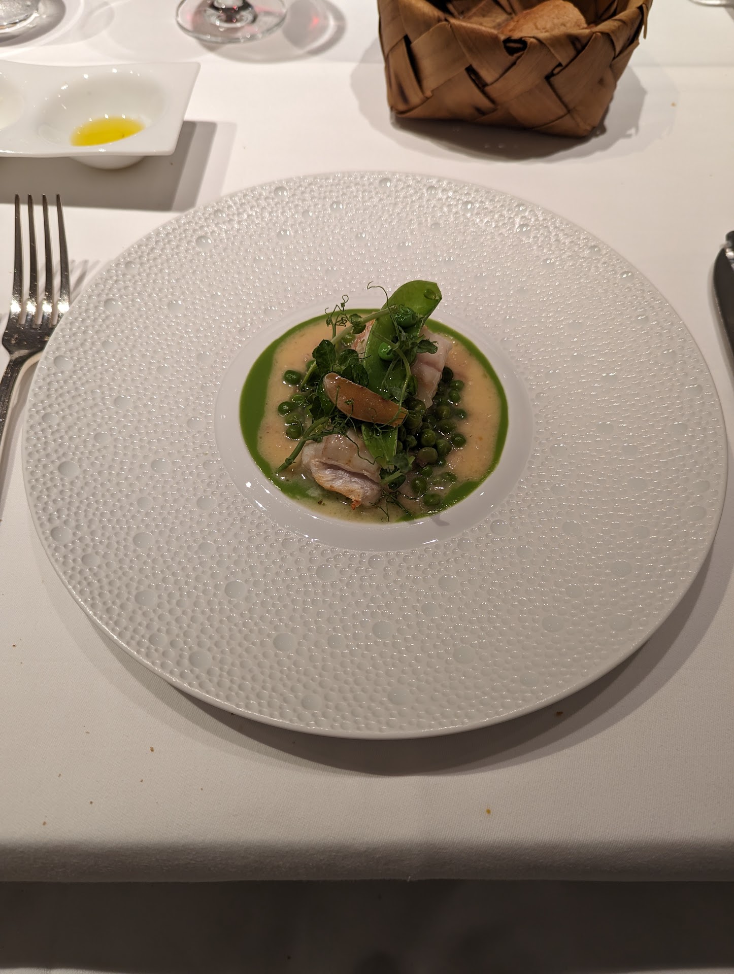 Read more「今回」 やっぱり美味しかったぁ。何度目かですが、満足です。最初の一品目から、最後のデザートまで、心もお腹もいっぱいです。 運ばれてくる時に、香りが漂い、食欲をそそります。お皿も前回とは違うし、盛り付けも美しく、思わず「うわぁ」っと声がもれてしまいます。目、鼻、口で料理を楽しめます。 パンは、3種類。おそらく、くるみ香がする塩カンパーニュ、竹炭のバケット、普通のバケット。 小麦の香りが感じられ、つい食べてしまう。 オリーブオイルとバターが添えられてきます。 そして、相変わらず、お料理が出てくるタイミングも良く、飲み物が空になる手前でのスタッフさんの声かけは気にならず。料理の説明も丁寧でした。 店内は白が基調で、ライトは電球色、クラシック音楽が流れている、落ち着いた空間です。 季節によりメニューは異なりますので、お電話で確認してくださいね。アレルギーのある方は、伝えてください。ご対応いただけます。