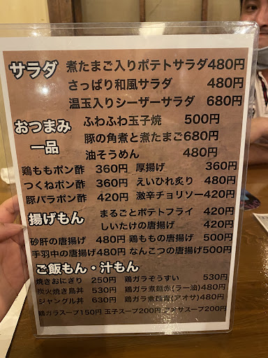 メニューを見て、安っ! お通しはないから、まずはとりあえずのコーナーからチョイス!とのことで ●生キャベツ180円 ぶっちゃけこれ1人1皿あってもいいぐらい キャベツに焼鳥の甘だれやマヨがかかってて無限キャベツに陥ります