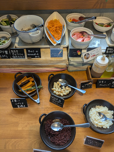 サラダビュッフェは、ビュッフェのテーブルに置かれているオニオンや海藻、胡瓜などが入っているお皿がとても小さいため、補充されてもすぐに無くなってしまい、色々な物が常に無い状態で。ドレッシングもスープも無く、残念なビュッフェでした。お客さんから「〜がありません」と数分ごとに言われ。店員さんは常に小走りな感じでしたが、食べ放題のオーダーが手一杯でビュッフェのテーブルまで気が回っていないようで。