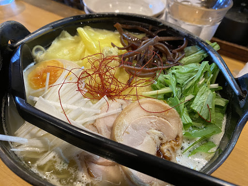 Mendokoro Sobajin in Tsujido offers a unique dining experience with its signature Chicken Paitan Ramen served in a hot iron pot. The rich yet light broth, made from carefully selected chicken, brings out deep umami flavors. Another popular dish is the Kakuni Fried Rice, which pairs well with the ramen. Sobajin has been a favorite among locals since its opening in 2013, thanks to its convenient location and flavorful, well-balanced menu options. Whether you're craving ramen or fried rice, this is a...