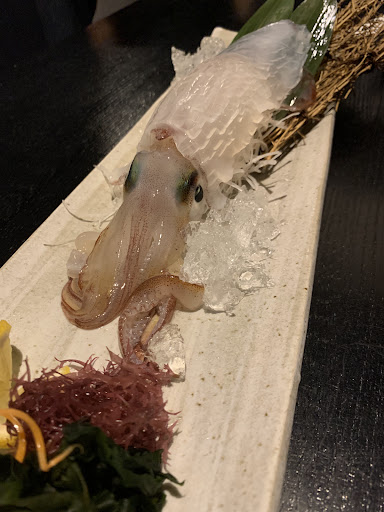 色々オーダーしたんですが 写真が無いものも沢山あります。 オーダー方法はテーブルに タブレットがあり、そちらでポチッと まずは、やっぱりイカ! 生簀に居たイカをオーダー サイズは小から中に大と それごとに値段が異なります。 イカはタブレットにないので直接オーダー^_^ 中をお願いするが、小しかおらず 仕方なく小にするも、まぁまぁでかい♪ これで、小の値段ならラッキーです。 とても綺麗なイカは、たまにピクピク動いたり 色を変えたりします。 さすがに、逃げたりはしません。 何切れか食べた後は、天ぷらにしてもらいます