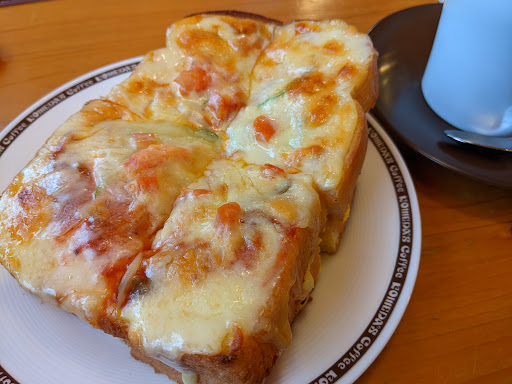大体のメニューがボリュームがあって、驚かされますが…。たっぷりたまごのピザトーストを頼んでみたら、厚みがすごくて、本当に驚きました。 厚切りのパンで、たまごはたっぷり挟んであるし、上に玉ねぎやピーマン、トマトがのっています。もちろんチーズもそれなりに。野菜の水分がしたたり落ちて、若干の食べづらさがあります。4つにカットしてもらって助かった…。 その他のメニューも試してみていますが、自分の中ではこれが一番衝撃的でした。