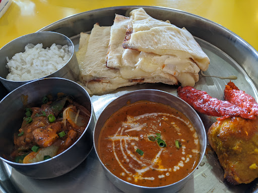 タンドリーチキンは鉄板で来ますが、他の同じようなお店より香ばしくて柔らかく美味しい!! 大体セットは千円前後です。 チーズナンはかなりお腹いっぱいになるので注意してください。辛いのが好きでないなら、辛さは「普通」がいいと思います。